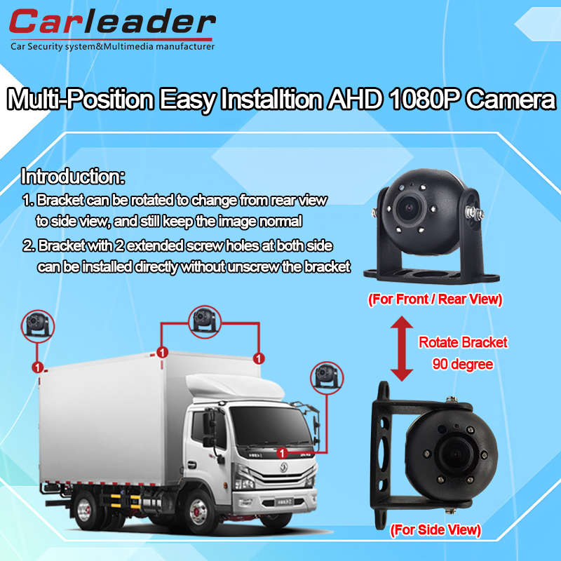கார்லீடர் AHD ஹெவி டியூட்டி வெஹிக்கிள் ஃப்ரண்ட் / சைட் / ரியர் வியூ கேமரா, மேல், கீழ், வலது, இடது ஆகிய இடங்களில் துளையை நிறுவுகிறது, இது கேமராவின் முன், பக்க மற்றும் பின்புற காட்சி போன்ற வெவ்வேறு கேமரா நிலைக்கு ஏற்ப கேமரா அடைப்பை சரிசெய்ய அனுமதிக்கிறது, இந்த கேமராவை வாகன பாதுகாப்பு கண்காணிப்பு அமைப்புக்கு மிகவும் இணக்கமாக மாற்றுகிறது.