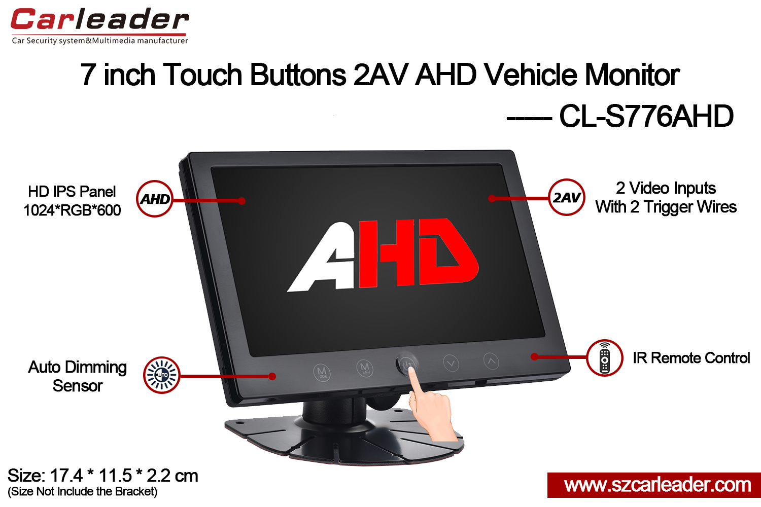 கார்லீடர்7 இன்ச் IPS திரை 2CH AHD உள்ளீடு டச் பட்டன்கள் கனரக வாகன மானிட்டர்வாகனம், பாதுகாப்பு, கடல் மற்றும் தொழில்துறை பயன்பாட்டிற்கு ஏற்றதுஒரு நம்பகமான தொகுப்பில் ஆயுள், நெகிழ்வுத்தன்மை மற்றும் உயர்தர காட்சி செயல்திறன் ஆகியவற்றை ஒருங்கிணைக்கிறது.