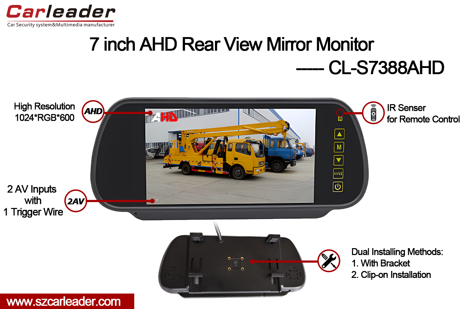 கார்லீடர்7 இன்ச் டிஎஃப்டி எல்சிடி ரியர் வியூ மிரர் ஏஎச்டி மானிட்டர்உயர் செயல்திறன் கொண்ட 7-இன்ச் கார் மிரர் AHD மானிட்டர் நவீன வாகன கண்காணிப்பு அமைப்புகளுக்கு விதிவிலக்கான தெளிவு மற்றும் பல்துறைத்திறனை வழங்க வடிவமைக்கப்பட்டுள்ளது. பயனர் நட்பு வடிவமைப்புடன் மேம்பட்ட அம்சங்களை இணைத்து, இந்த மானிட்டர் பல்வேறு ஓட்டுநர் நிலைகளில் நம்பகமான செயல்திறனை உறுதி செய்கிறது.