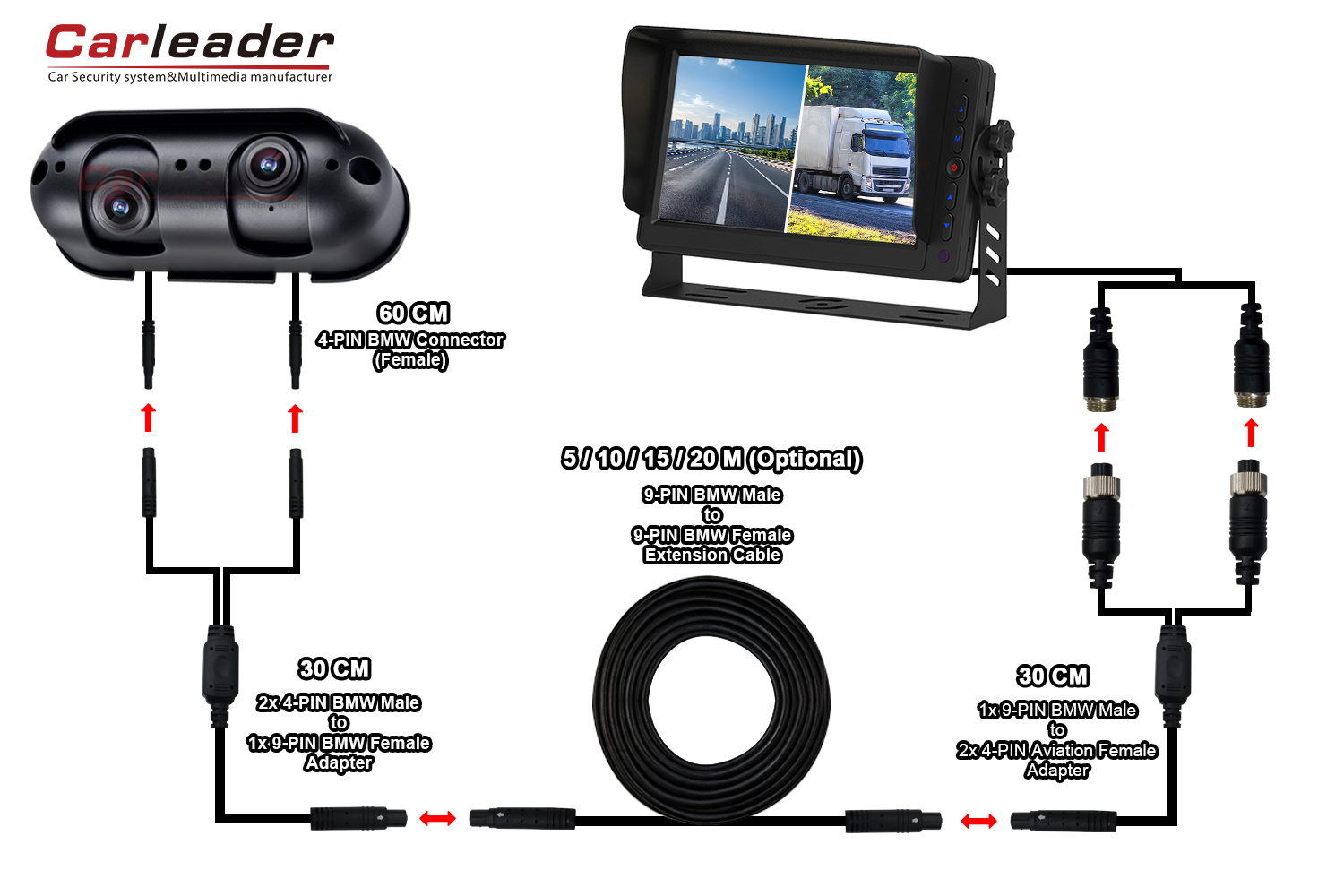 IP69KStarlight AHD Dual Lens Heavy Duty Reversing Camera, ஒரு சிறந்த தரமான புதிய வடிவமைக்கப்பட்ட பிரைவேட் டூலிங் AHD கேமரா, ஒரு கேமராவில் டூயல் லென்ஸுடன் ஒருங்கிணைக்கப்பட்டுள்ளது, மேலும் லென்ஸ் கோணம் தனித்தனியாக சரிசெய்யக்கூடியது, இது பயனரை ஒரே மானிட்டரில் நெருங்கிய மற்றும் தொலைதூரப் பார்வையைப் பார்க்க அனுமதிக்கிறது.